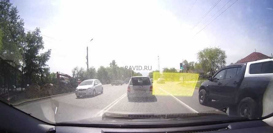 Камера устройства имеет увеличенный угол обзора, производитель заявляет этот параметр, равным 170°. Практически развёрнутый угол позволяет отслеживать изменение ситуации не в узком секторе, как у обычных видеорегистраторов, а на всём пространстве перед автомобилем. Качество видео у краёв картинки немного хуже, но вполне достаточно для распознавания деталей.
