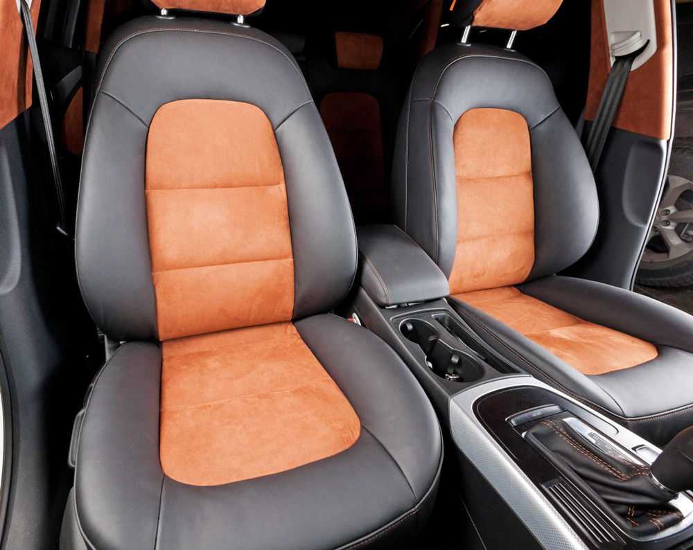 Сиденья сделайте из кожи или же из кожи с вставками из искусственной замши. Для потолка и дверных карт можно использовать одну алькантару, так как эти области почти не подвергаются механическим воздействиям.
