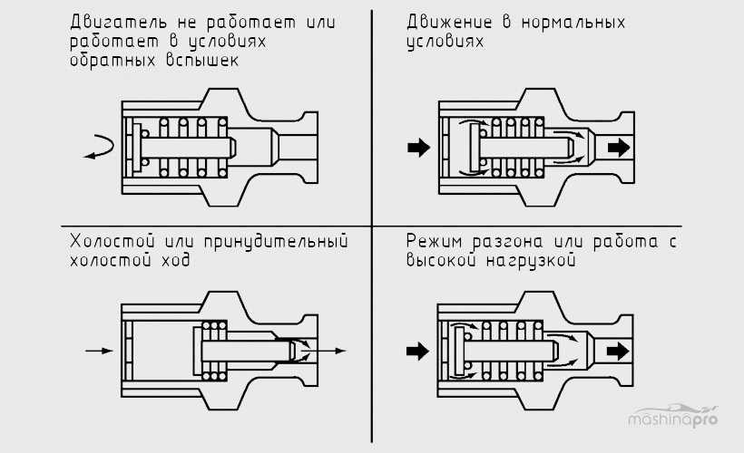 это вызывает закрытие клапана, предотвращая попадание «выхлопа» во впускной