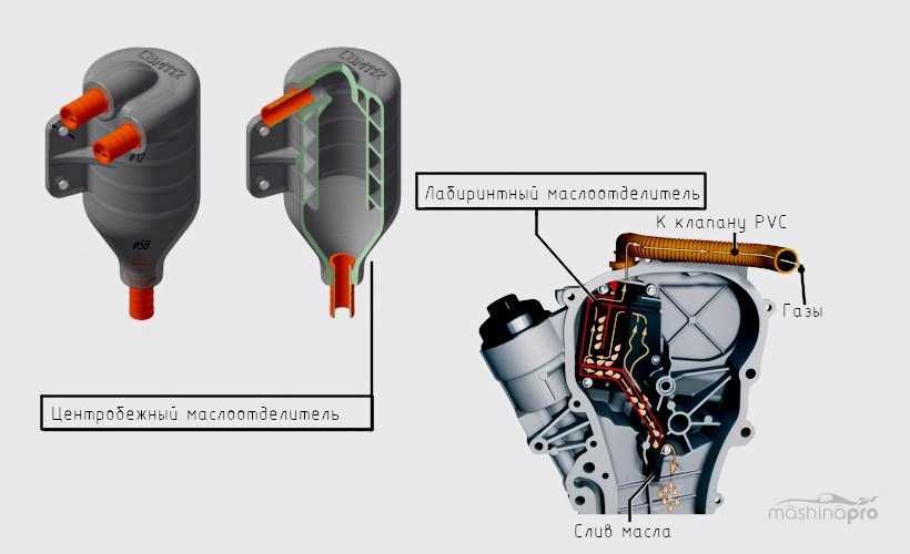 увидит синий выхлоп из трубы с запахом гари. Есть два вида маслоотделителей: