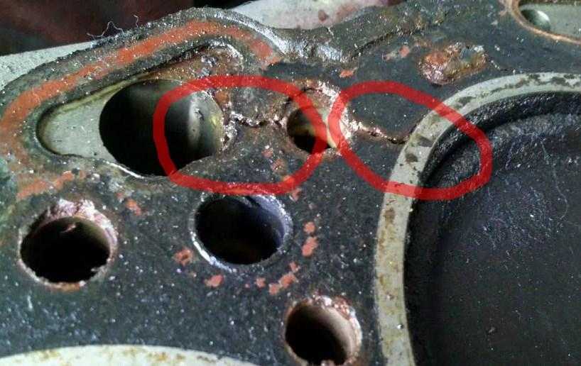 - Прогорание прокладки ГБЦ. Лечится заменой прокладки ГБЦ.