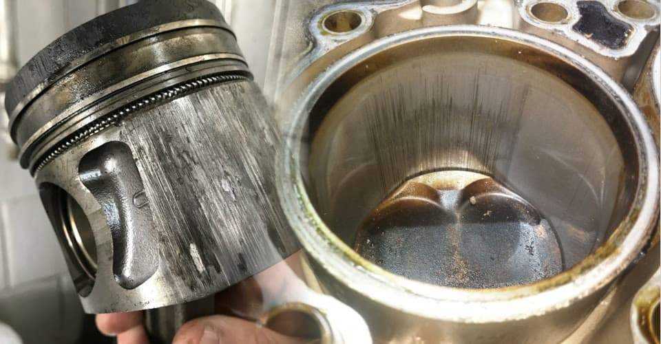 В норме юбка поршня не соприкасается с внутренней поверхностью цилиндра. Но при нарушении фаз газораспределения, в случае закоксовки поршневого пальца и колец происходит столкновение. Зеркало никогда не бывает идеально гладким. Не стоит считать проблемой микроскопические царапины. Надо бить тревогу только когда видите глубокие борозды.