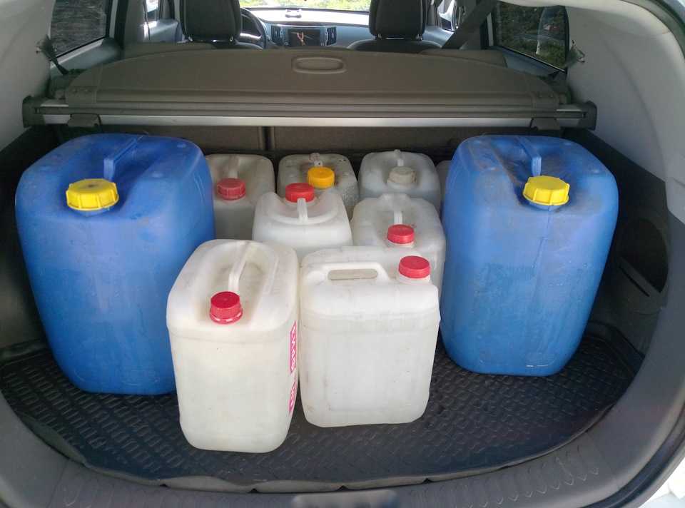 При перевозке канистры с горючими веществами в багажнике автомобиля необходимо проконтролировать, чтобы крышка была плотно закрыта. Емкости устанавливают строго в вертикальном положении и фиксируют так, чтобы они находились в неподвижном состоянии при движении.