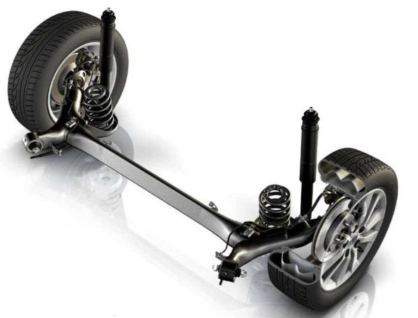Полузависимая конструкция с качающейся балкой распространена на бюджетных автомобилях, оснащенных передним приводом. Система включает такие детали:
