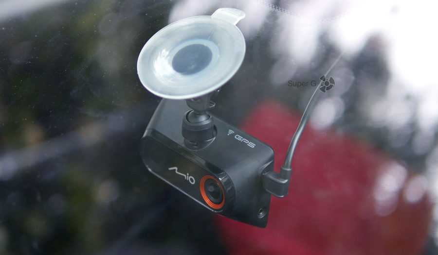 Видеорегистратор Mio-MiVue330 крепится по классической схеме на переднем стекле. Кронштейн крепления можно разворачивать по своей оси на 360°.