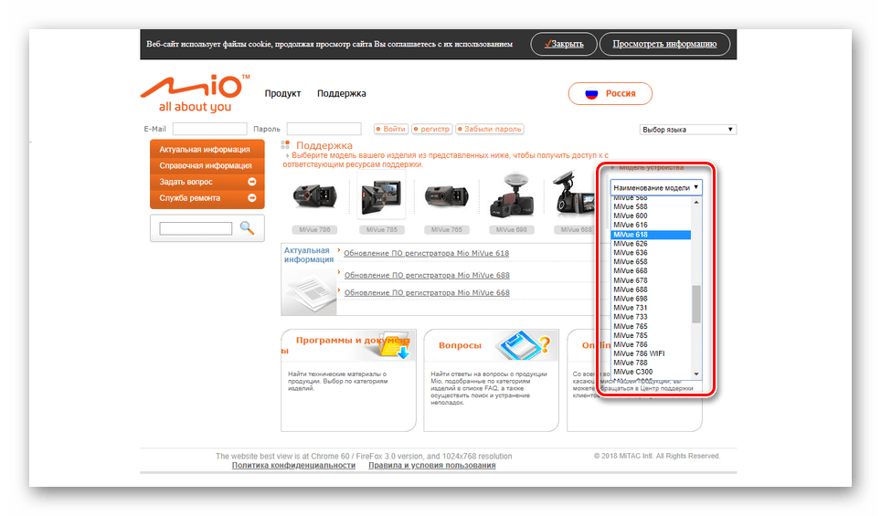 Из представленного списка выберите модель вашего устройства. Мы покажем процесс установки на примере MIO MiVue 688.