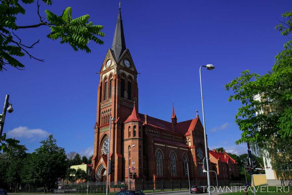 Сворачиваем на улицу Райниса и любуемся следующей достопримечательностью Елгавы. Католический неоготический костел Пресвятой Девы Марии является памятником архитектуры. Построен он был в 1906 году на месте более древней церкви 1630-х гг.