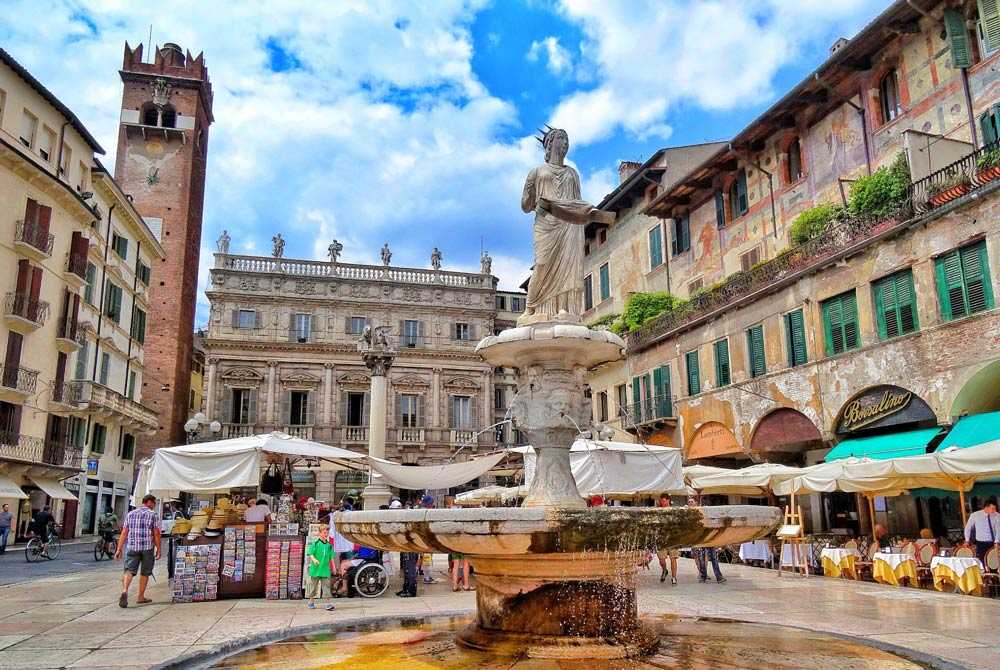 Пьяцца делле Эрбе (Площадь Трав) – отсюда советуем начинать знакомство с городом, поскольку это его самое сердце с уникальной архитектурой. С площади можно добраться к любой из самых популярных достопримечательностей Вероны.