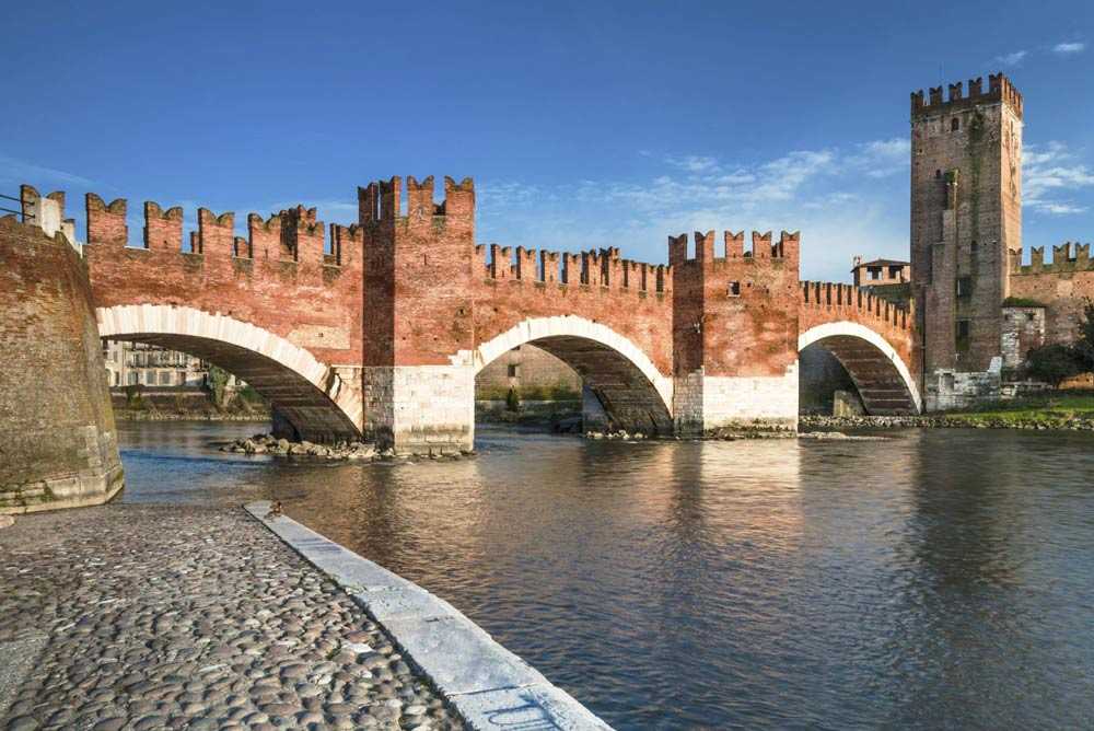 Левобережье города с замком Кастельвеккио, о котором рассказывалось выше, объединяет еще одна уникальная достопримечательность города – Мост Скалигеров. На этом месте он находится с середины 14 века и носит имя правящей на то время династии. Сооружением возведено в романском стиле и украшено зубчатыми элементами. Длина моста – 12 метров.