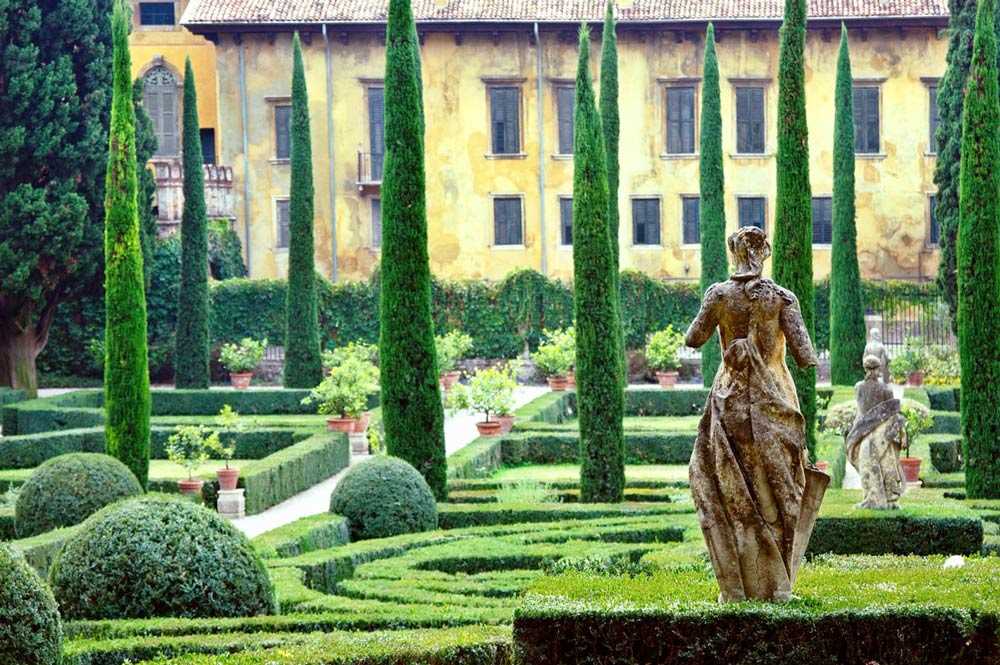 Giardino Giusti считается одним из красивейших во всей Италии. Он был разбит рядом с дворцом влиятельной веронской семьи Джусти в XVI в. А в XIX столетии сад был преобразован в английский парк. Зелёные клумбы и лабиринты, цитрусовые деревья соседствуют с красивыми скульптурами и фонтанами.