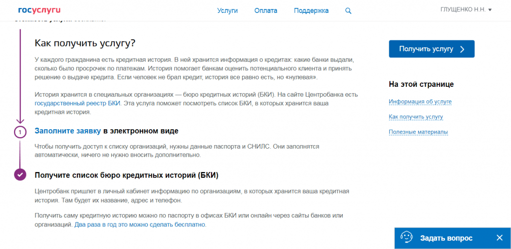 После того как получили список БКИ, где есть ваша кредитная история, получите ее одним из методов: