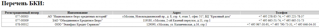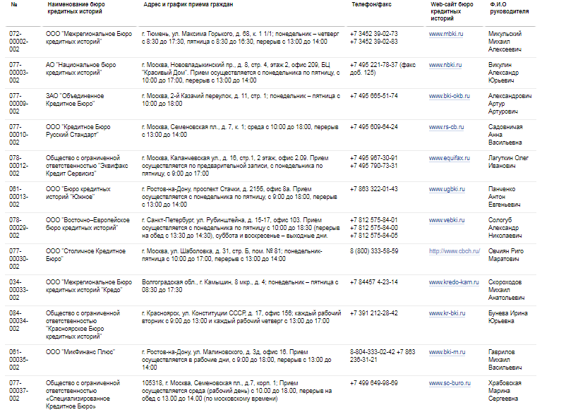 Государственный реестр БКИ на сайте ЦБ РФ