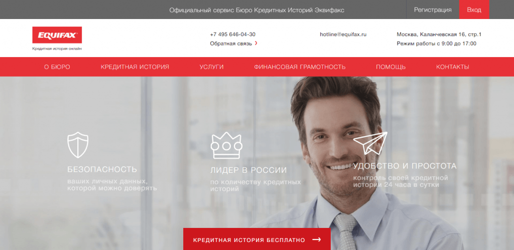 Главная страница сайта БКИ Эквифакс