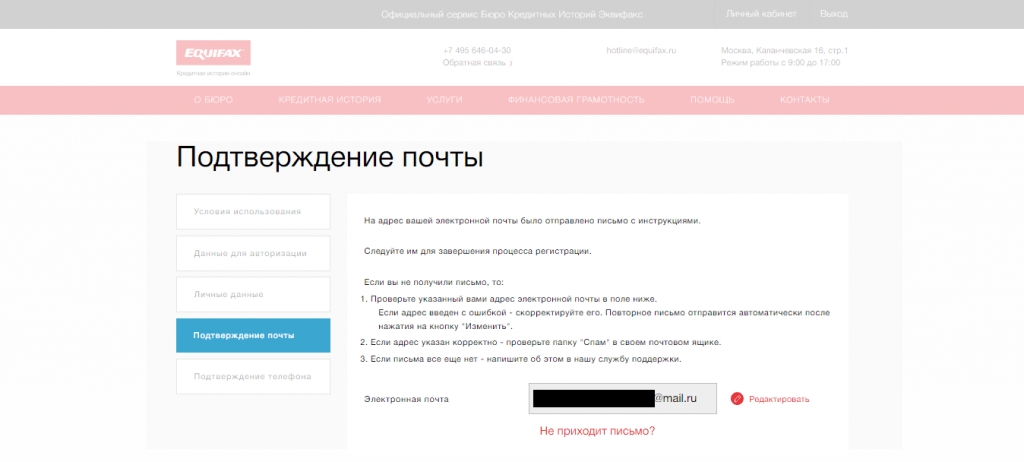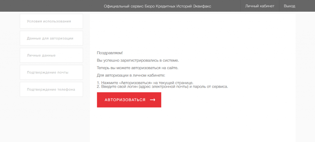Шаг 1. Зайдите на сайт БКИ “Эквифакс”.
