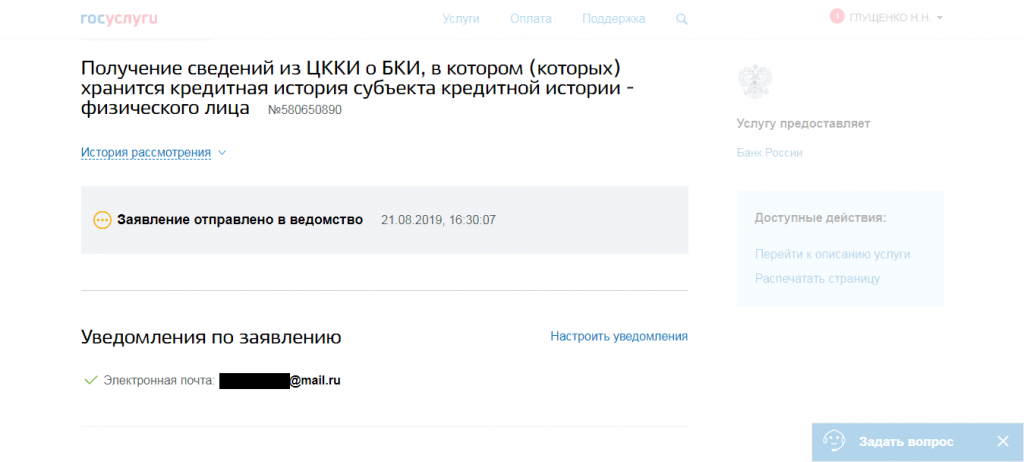 Буквально через 6 минут я получила необходимую информацию — на почту и в личный кабинет Госуслуг.