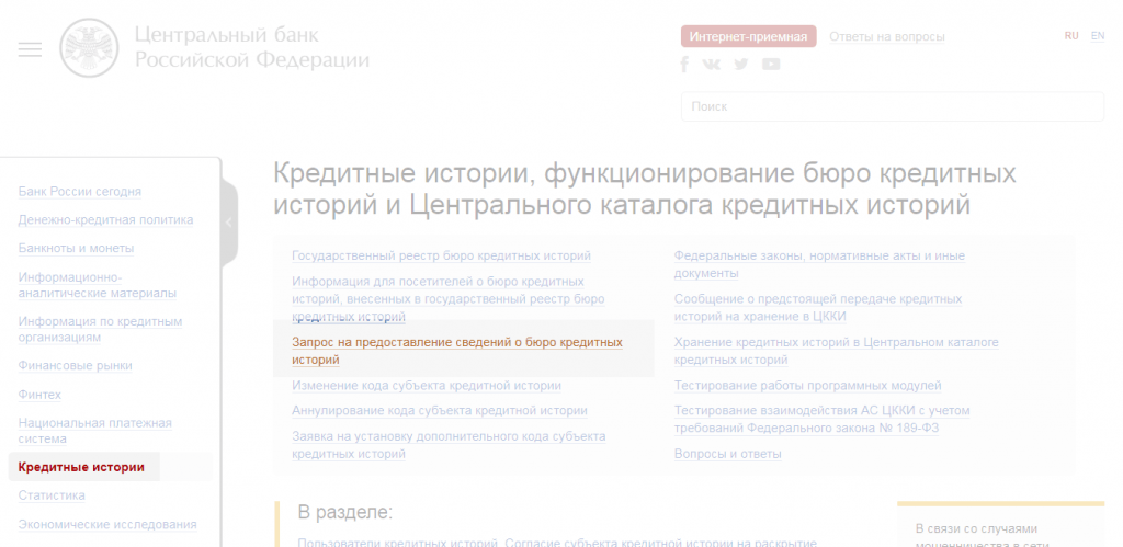 Как узнать БКИ через сайт Центрального банка России