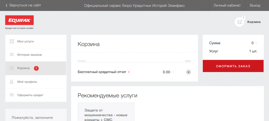 Я заказывала кредитную историю в БКИ “Эквифакс” через их сайт. Алгоритм таков: