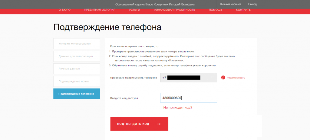 Шаг 9. После откроется страница с подтверждением номера телефона — введите код из СМС.