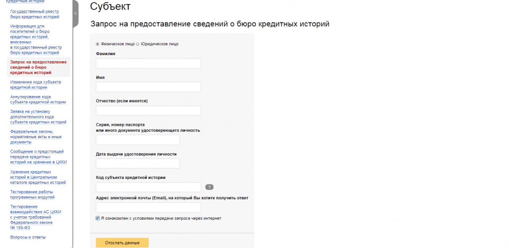 Запрос кредитной истории субъектом