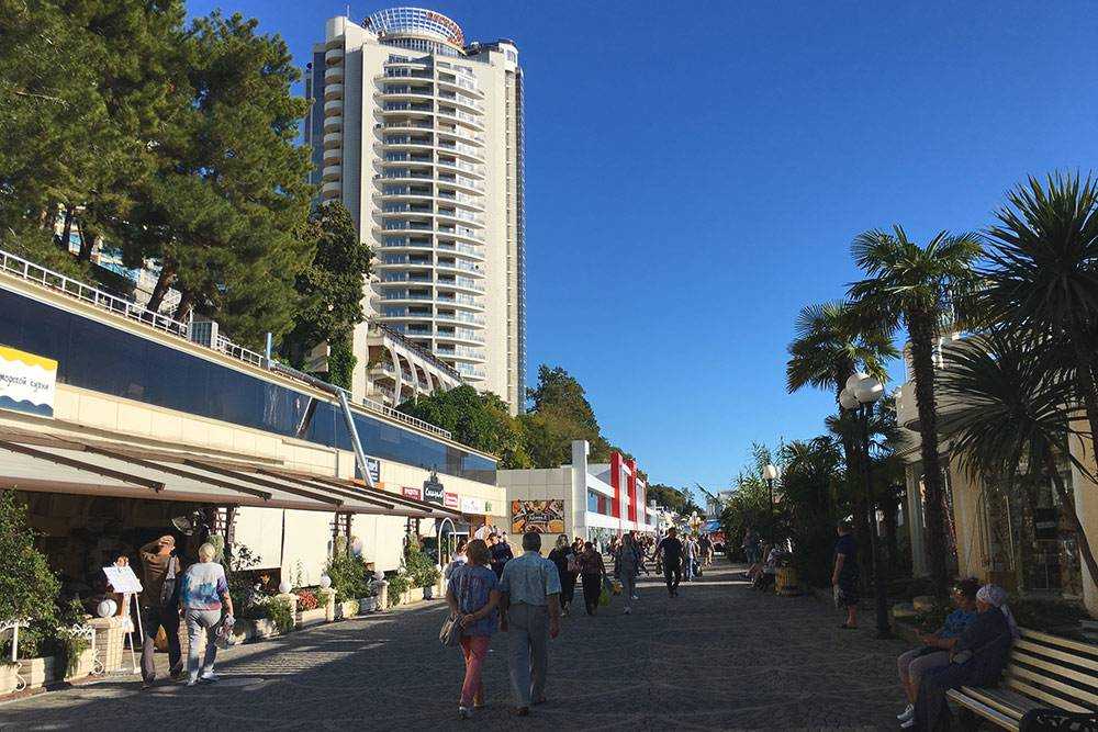 Приморская набережная — самое популярное и людное место в Сочи летом. Не советую отправляться туда на прогулку в разгар сезона: народу будет как в московском метро в час пик. Зато осенью или зимой там спокойно и умиротворенно. На мой взгляд, гораздо приятнее гулять по верхней части набережной, где находится Приморский парк. Вдоль моря можно идти по тенистой аллее с множеством лавочек. Там стоит сочинский маяк, новые роскошные отели и три исторических здания: дом первого городского врача Гордона, библиотека имени Пушкина и гостиница Приморская.