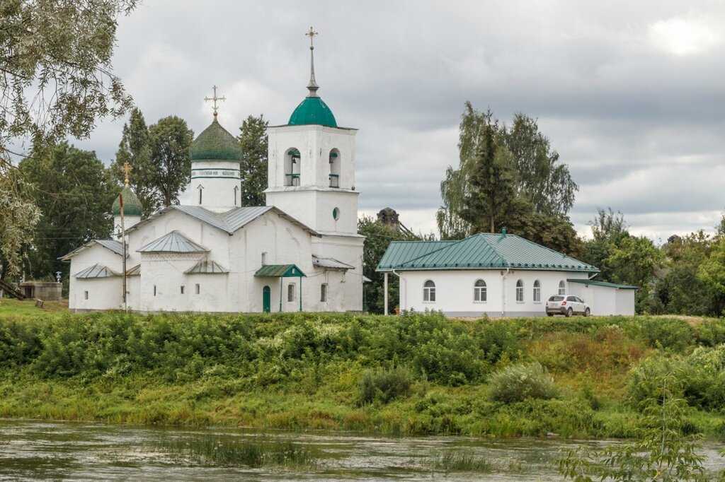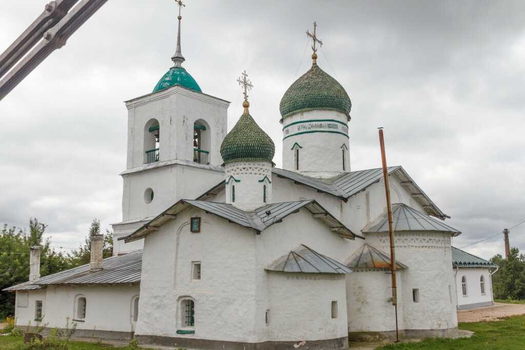 На острове посередине реки Великой выделяется приземистый храм Николая Чудотворца с приделом Преображения Господня, построенный в 1541-1542 годах на территории крепости. Он обладает яркой особенностью — его алтарь находится не в восточной части храма, как принято в православии, а в северной. По одной из версий — алтарь указывает на Псков, демонстрируя свое подчиненное положение. По другой — необходимостью строительства храма параллельно дороге, соединяющей Псков с Опочкой, Витебском, Смоленском и Киевом.
