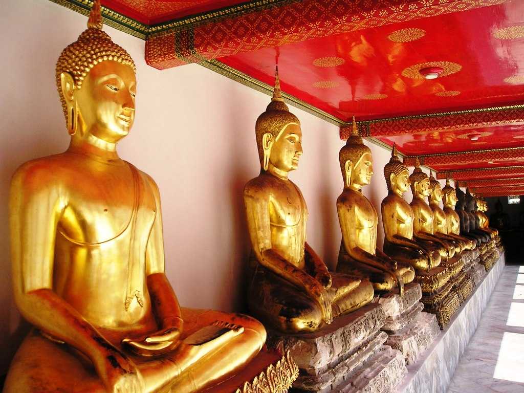Знаменитая скульптура имеет длину 46м, но не только этим знаменит Ват Пхо. Здесь больше тысячи статуй тайского бога. Вокруг храма есть разные строения, парк, искусственный пруд с водопадом.
