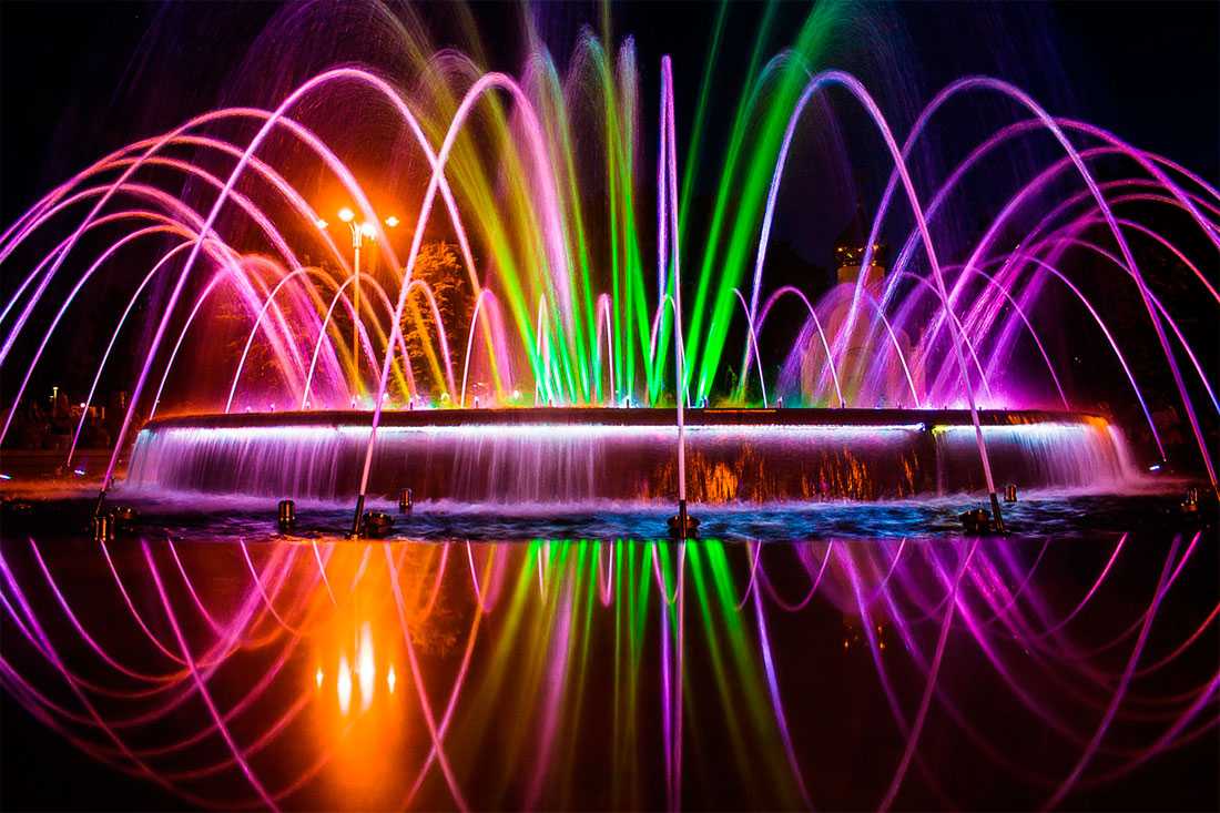 Удивительная гармония света, воды и музыкальных композиций вызывает восторг у многочисленных зрителей. В кульминационные моменты струи фонтана поднимаются на высоту 15 метров! Завораживающее шоу сопровождается музыкой разных жанров: от классики до джаза. Ежедневное вечернее шоу можно посмотреть с 22 до 23 часов. Музыкальные фонтаны работают в теплое время года – с мая по октябрь.