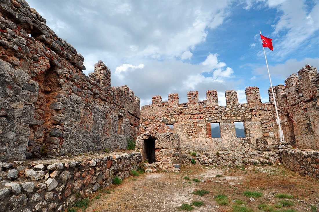 К сожалению, древний замок не сохранился до сегодняшнего дня: от него остались одни руины. Однако, глядя на них, можно оценить весь масштаб оборонительных сооружений Аланьи, которые были расположены здесь много веков назад. Несмотря на то, что в XV веке в этих местах произошло разрушительное землетрясение, каменная кладка стен и бастионов частично сохранилась еще с византийских времен.
