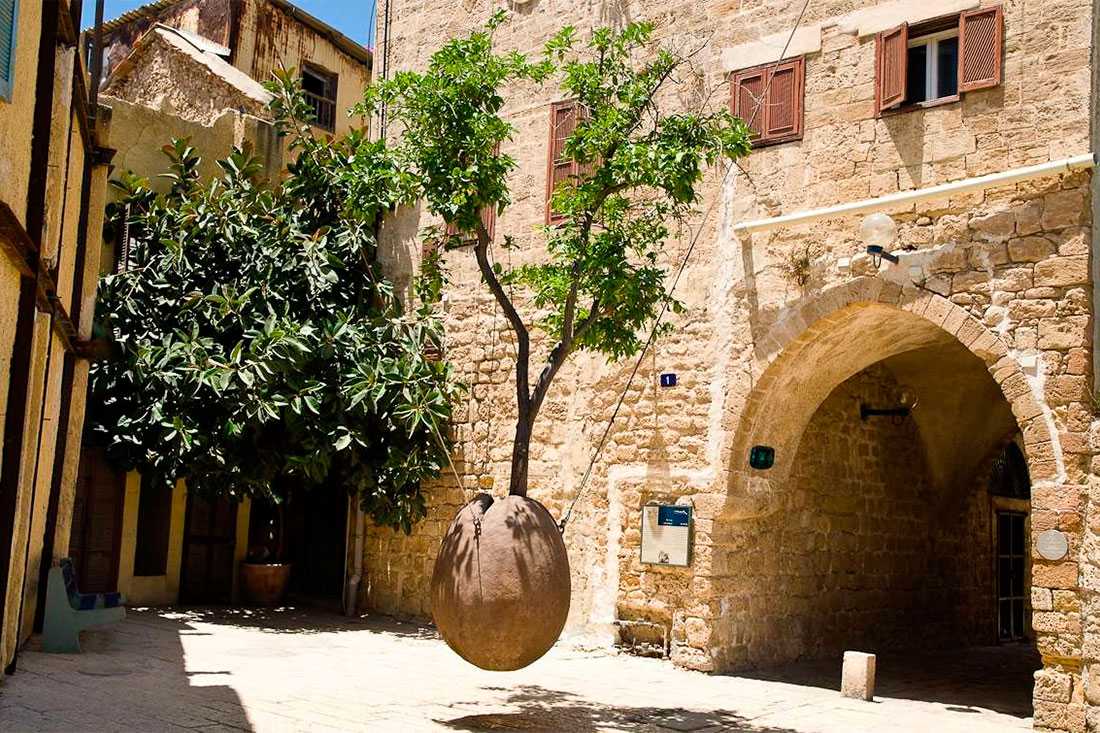 Необычный арт-объект, появившийся среди старых домов в 1993 году, стал практически символом района Яффо. Эта инсталляция является работой скульптора Рана Морина. Необычное художественное решение прекрасно вписалось в архитектурную среду и стилистику старых кварталов Яффо, и апельсиновое дерево стало одной из достопримечательностей этого района.