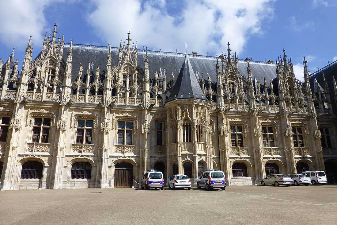 Богато украшенные готические суды, которые в конце Второй мировой войны являлись всего лишь немногим больше, чем просто оболочкой, были восстановлены и приобрели свой вид начала XVI столетия. Тем не менее, на улице Жанны д’Арк, вы все еще можете увидеть тот самый фасад с характерными следами, показывающий ущерб, нанесенный во время бомбардировок в 1944 году.