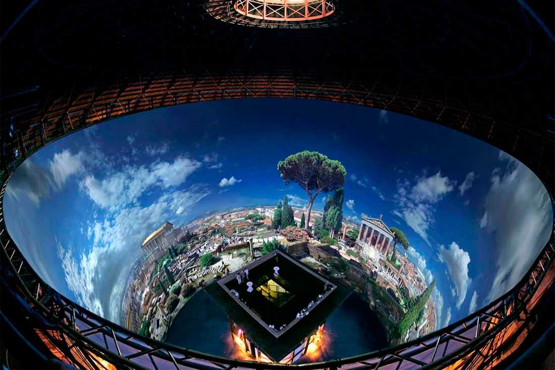 В прошлые годы здесь были показаны Большой Барьерный риф, Амазония, Древний Рим и Руан 1431 года — часто с восходом и заходом солнца, порождающим различные настроения, а также штормами. Смотровая площадка высотой 15 м, находящаяся в центре зала, является превосходной точкой обзора экспозиции.