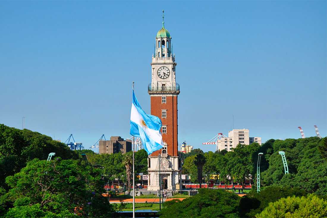 «Монументальная башня» – так переводится название этого исторического объекта в центре города. Построен он был в честь 100-летия Майской революции английским архитектором Макдональдом. Тогда башня называлась Английской. Строение из красного кирпича насчитывает восемь этажей и выдержано в стиле Палладио.