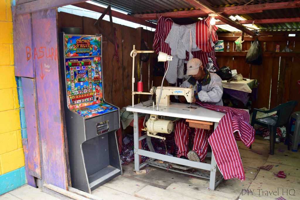 While we were doing so, we came across a lot of MEN sewing clothing, kids playing pinball machines, and people going about their lives.