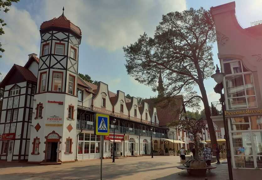 На пересечении улиц Курортная и Ленина расположена небольшая площадь с множеством маленьких достопримечательностей. Ее окружают современные домики, стилизованные под немецкую архитектуру Раушена. В них располагаются лавки и кафе. На площади можно увидеть скамью влюбленных со спинкой в виде сердец. Затем бросить монетку в декоративный фонтан. Полюбоваться яблоней с янтарными яблоками. А также рассмотреть макет острова Кнайпхоф (ныне – остров Канта в Калининграде).