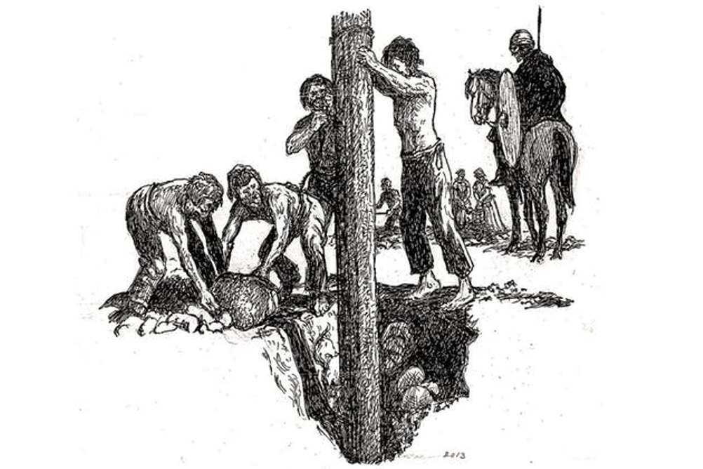 Отправка таких мощных колонн требовала большой объем работы. Одно основание столба могло содержать до 1,5 тонн камней