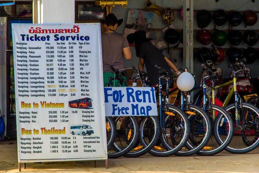 До Ванг Виенга автобус идёт около четырёх часов. По прибытии на конечную станцию, нужно пересесть в небольшой минибас, который бесплатно довезёт вас до центра города, а там уже куда глаза глядят. Город совсем небольшой, ориентироваться в нём очень просто.