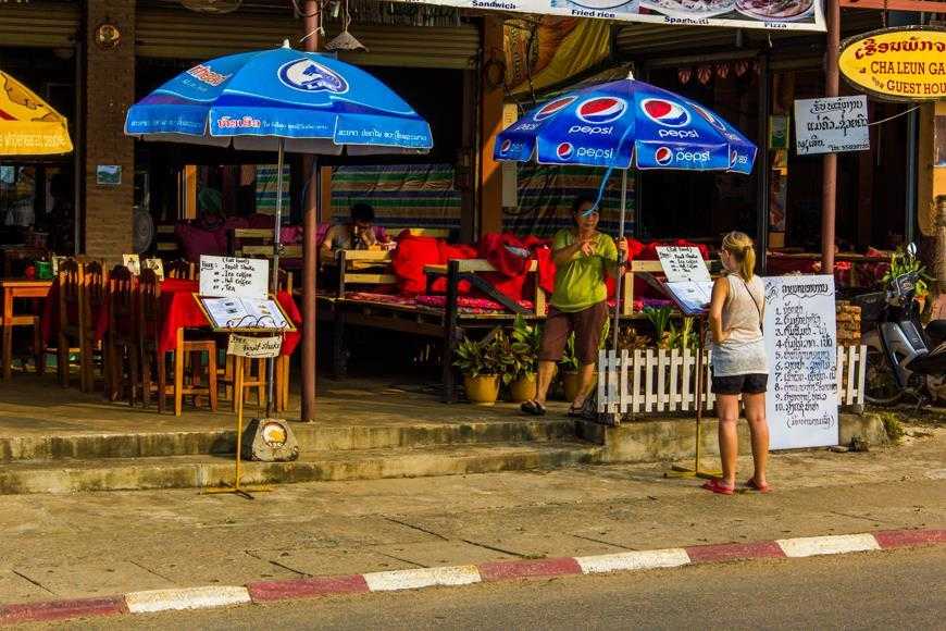 Как я уже сказала, весь город – это одна большая туристическая деревня, расположенная в очень живописном месте в горах, вдоль реки Nam Xong. Весь центр города целиком состоит из многочисленных гестхаусов, кафе, ресторанов, пунктов проката велосипедов и различных туристических контор, предлагающих экскурсии по городу и, конечно же, знаменитый тюбинг, ради которого сюда в основном все и едут.