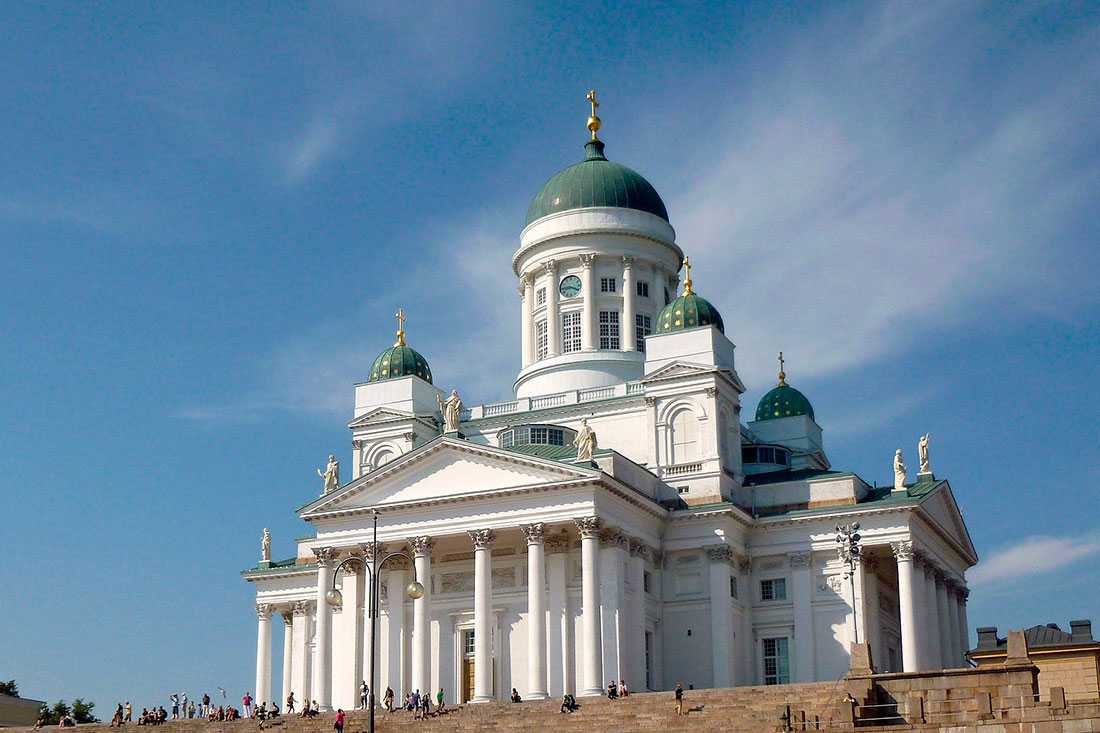 Собор Св. Николая на Сенатской площади — творение немецкого архитектора Карла Людвига Энгеля. Он разработал проект перестройки городского центра в первой половине XIX века. Собор виден со всех сторон, его четыре фасада, ориентированные по сторонам света, совершенно одинаковы. Портики украшают колоннады, на фронтонах установлены статуи апостолов. Светло-серый центральный купол, возвышающийся на 80 м, окружён четырьмя малыми куполами, расположенными по углам сооружения.