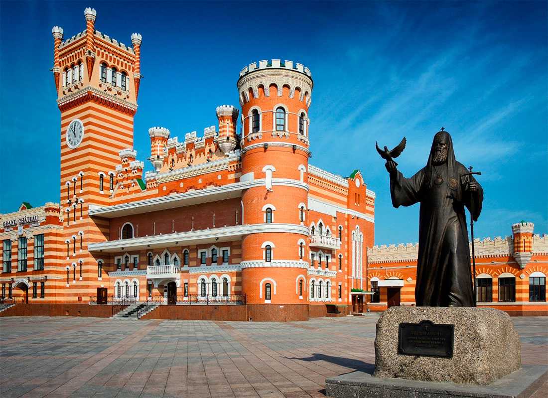 Огибаемая набережной Брюгге Патриаршая площадь – сердце Йошкар-Олы и место средоточения многих местных достопримечательностей. Приехав сюда, вы увидите и памятник выпускающему в небо голубя патриарху Алексию II, в честь которого и названа вся площадь, и памятник совсем еще юной императрице Елизавете Петровне, установленный у школы-интерната для одаренных детей, и памятник Петру и Февронии, служащим олицетворением любви и верности, и «живые» часы «12 апостолов», о которых мы еще расскажем чуть позже, и похожее на замок здание Республиканского театра кукол.