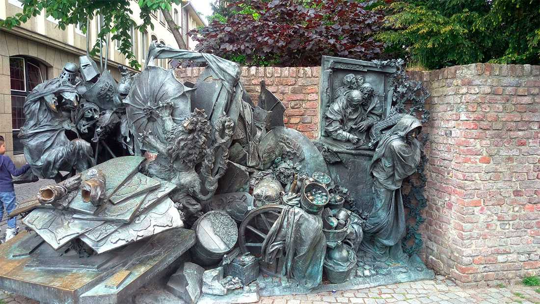 Ансамбль бронзовых скульптур, отлитых в 1988 году, спрятался на углу Бургплац. Он был установлен в честь 700-летия обретения Дюссельдорфом статуса города. Человеком, сотворившим этот шедевр, был художник из Дюссельдорфа по имени Берт Герресхайм, и каждая из представленных им фигур рассказывает свою часть истории об основании города, а вместе с ним – об извечном соперничестве Дюссельдорфа с Кельном.