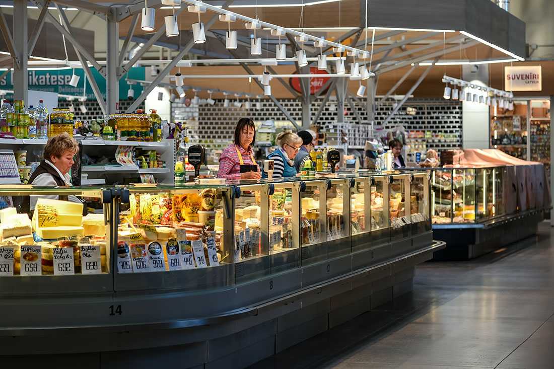 Здесь продают копчености, паштеты, сыры, рижский бальзам и ржаной хлеб. Рынок имеет обширную прилегающую территорию под открытым небом, где также бойко идет торговля – не только пищевой продукцией, но и одеждой, сувенирами, растениями, товарами для дома.