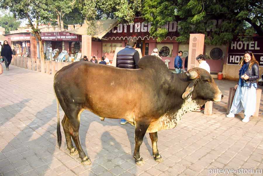 Корова священна, как я понял, потому, что даёт хорошее молоко, которое можно употреблять даже джайнистам. А они — чистые вегетарианцы и не едят даже то, что растёт под землёй, как-то лук, чеснок или свёклу.