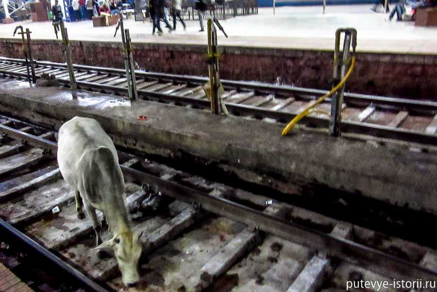Яркая иллюстрация. В Джанси корова забрела на рельсы прямо на вокзале, между платформ. Прогнать священное животное нельзя. Народ живо заинтересовался, что же будет. Ведь вот-вот должен прибыть поезд. Проблему решило само животное. Корова прижалась к платформе, и поезд свободно проехал. Ну, не чудо ли, Шивой сотворённое?