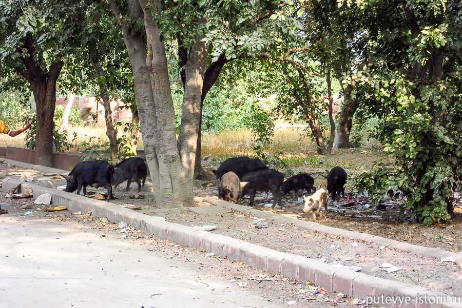 К живым существам индийцы относятся очень уважительно в силу религии, которая категорически против насилия. Особенно почитаются коровы, которых везде, кроме Дели, полно и которые повсюду ходят вполне самостоятельно. Чем заняты и как выживают эти невозмутимые животные, не совсем понятно. Они вроде и не едят. Так, если ветку сломанную с земли поднимут или пластиковый пакет из мусорной кучи пожуют.