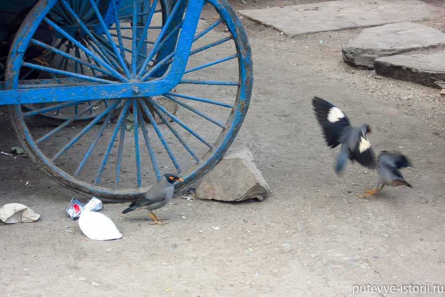 Много разных птиц. Над Дели парят стаи хищников, много ворон. Везде задиристые скворцы майны с жёлтым пятном около глаз.