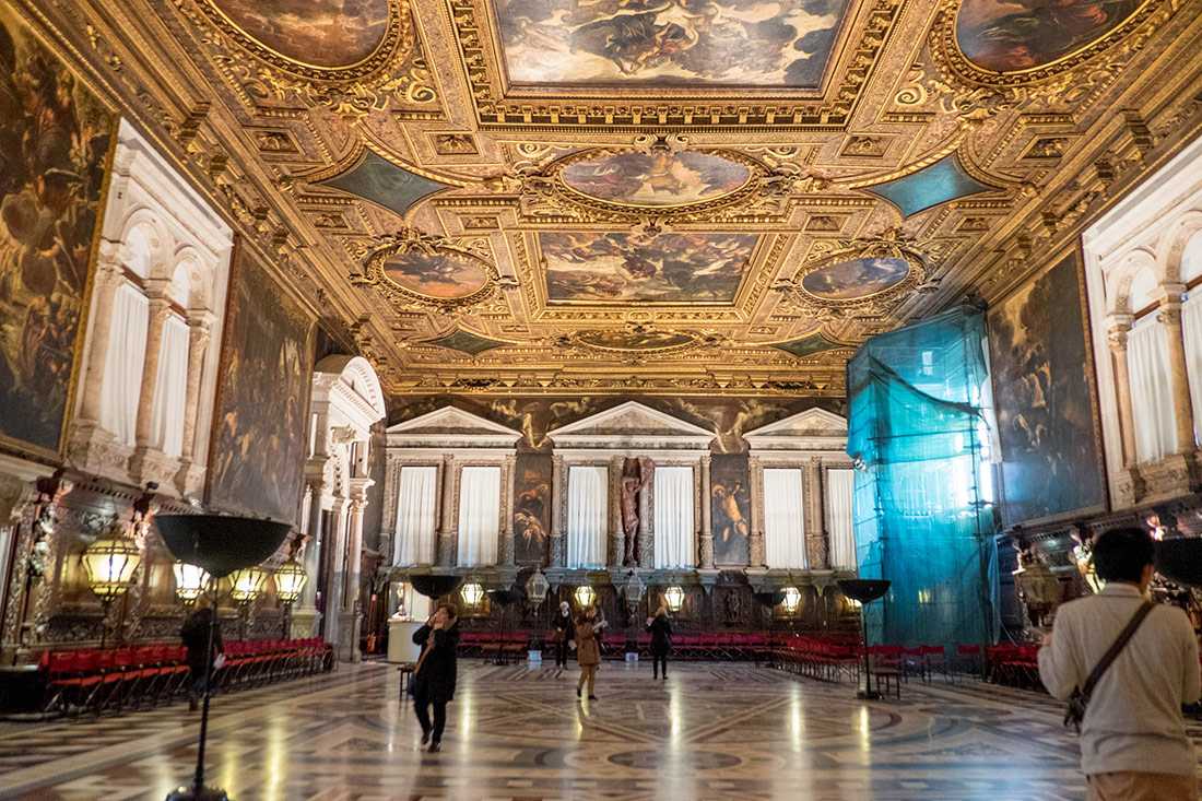 Посетители могут с благоговением обозревать исторические залы, где хранится множество замечательных работ кисти Тинторетто. Потрясающе красив Salone Maggiore, а шедевры Вечеллио Тициана и Якопо Пальма Младшего только добавляют ему великолепия.
