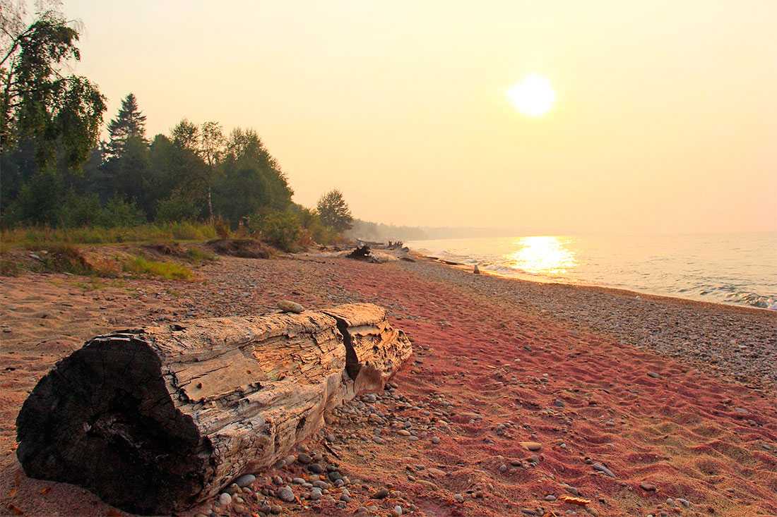 Гранатовый пляж находится на южном побережье Байкала, рядом с городом Байкальск. Свое название он получил из-за необычного песка, который здесь имеет насыщенный бордовый оттенок. Такой цвет пляжу дают частицы яркого камня – граната.