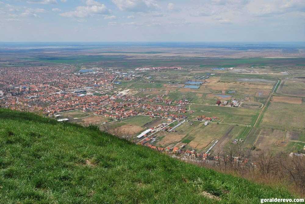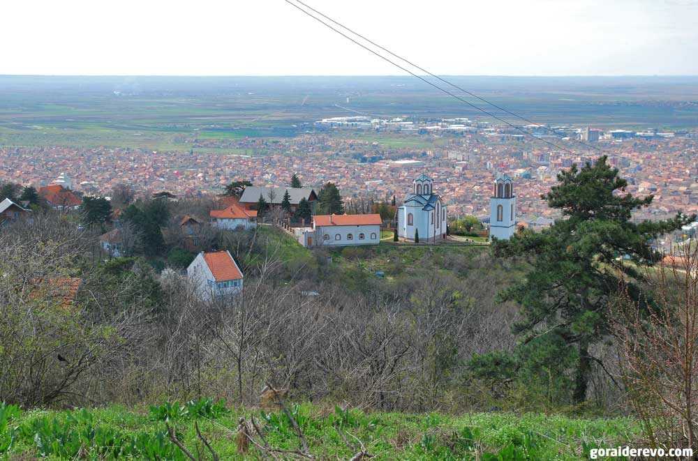 Уже на середине склона начинаешь засматриваться на виды. Церковь Святого Теодора (2002 г.) и сам город Вршац на заднем плане:
