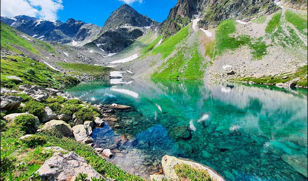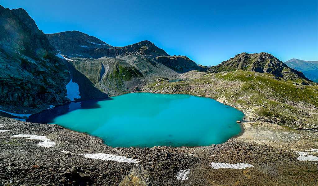 Долина реки Большая Дукка скрывает настоящий бриллиант – озеро, вода которого переливается всеми цветами радуги.