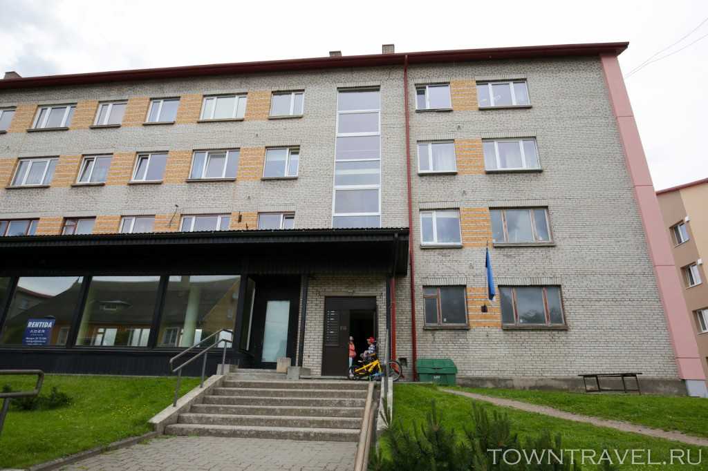 В Выру хорошо развита сфера обслуживания, хватает и кафе и магазинов. Но вот здесь явно что то открывали на первом этаже, и явно не получилось.